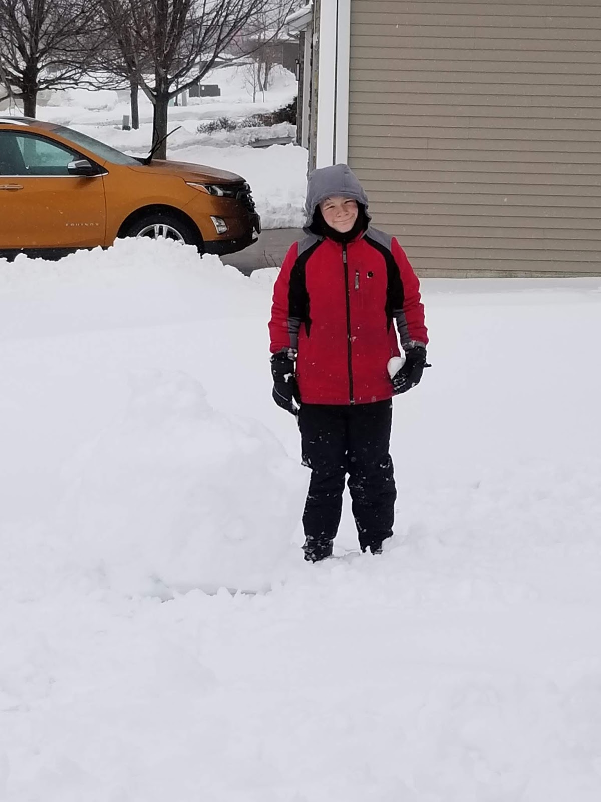 We had our second snow day today! The boys were excited to get outside and play! Ben made a snow toilet... I don't know why... And then Conner made a couple of snowmen. The last one was really big and he needed Ben's help to put the snowman together! They had lots of fun!